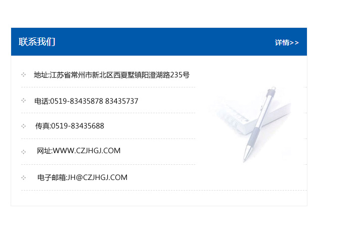 傳真:0519-83435688    郵編:213135    網址:WWW.czjhgj_com.xflhl.com    電子郵箱:JH@czjhgj_com.xflhl.com